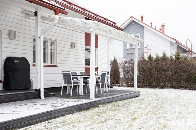 Tontti on oma, jonka hyvin hoidettu piha sekä katettu terassi tarjoavat viihtyisät puitteet ulkoiluun ja rentoutumiseen. Autokatos ja käytännölliset varastotilat tuovat lisää toimivuutta. Sähkölämmityksen rinnalla ilmalämpöpumput tuovat energiatehokkuutta.