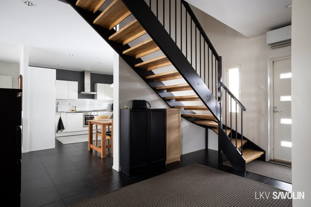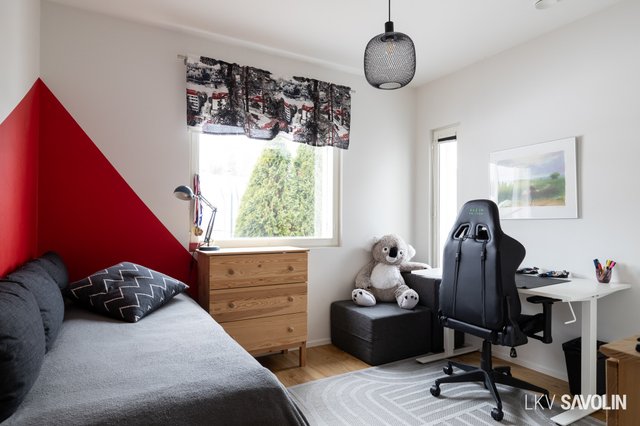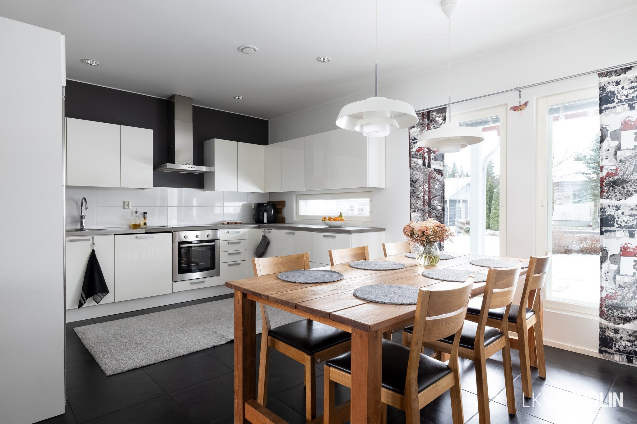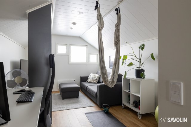 Tämä tilava ja valoisa omakotitalo Jyväskylän halutulla Sääksvuoren alueella tarjoaa ihanteelliset puitteet sujuvaan ja viihtyisään perhearkeen. Vuonna 2011 valmistunut koti laajennettiin yläkerran osalta vuonna 2020, ja kokonaisuus on suunniteltu huolella vastaamaan nykyaikaisen asumisen tarpeita.