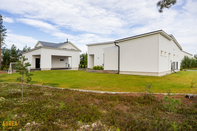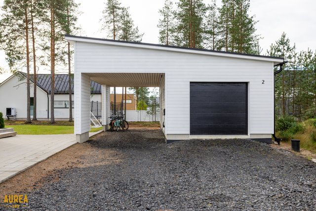 Erillisessä talousrakennuksessa on lämmin autotalli, lämmin varasto sekä autokatos.