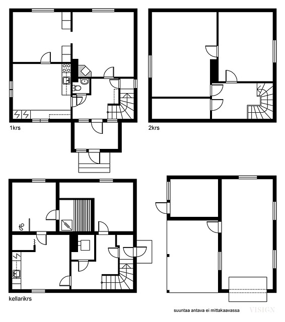 - Kyseiset pinta-alatiedot on saatu Rakennus- ja huoneistorekisteristä. Pinta-aloissa ei ole otettu huomioon kellariin tehtyjä pesuhuonetta, saunaa ja kodinhoitohuonetta. Mainittu pinta-ala saattaa tämän ikäisessä kohteessa poiketa olennaisesti nykyisten standardien mukaan laskettavasta asuinpinta-alasta. Todellinen asuinpinta-ala voi olla esitteessä mainittua pienempi tai suurempi.