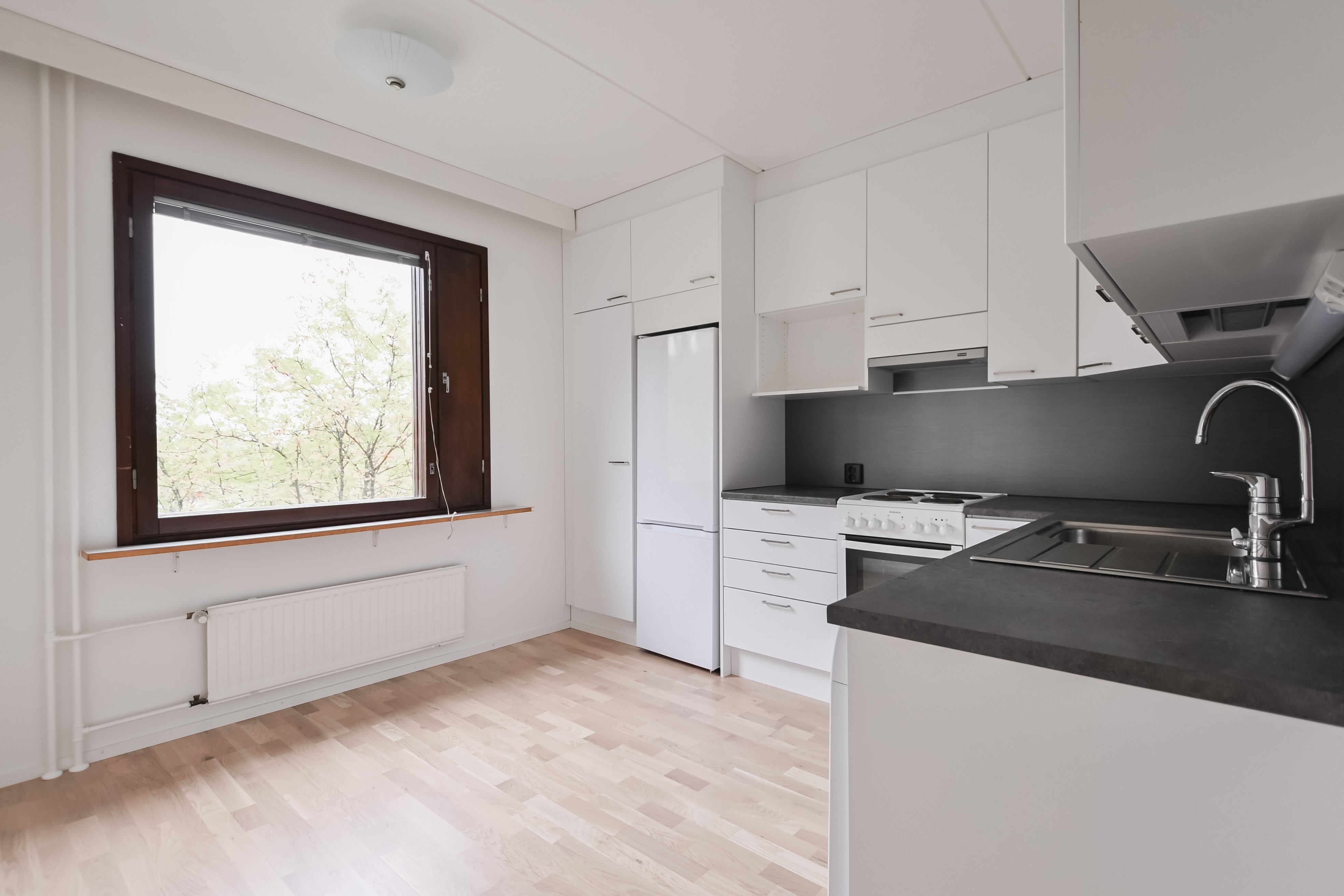 - Jääkaappipakastin, liesituuletin, liesi, ja astianpesukone