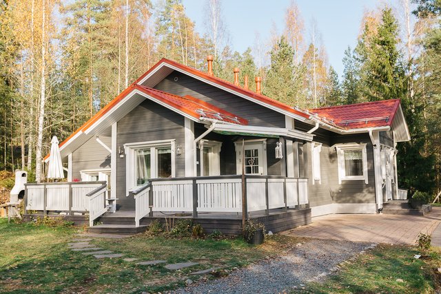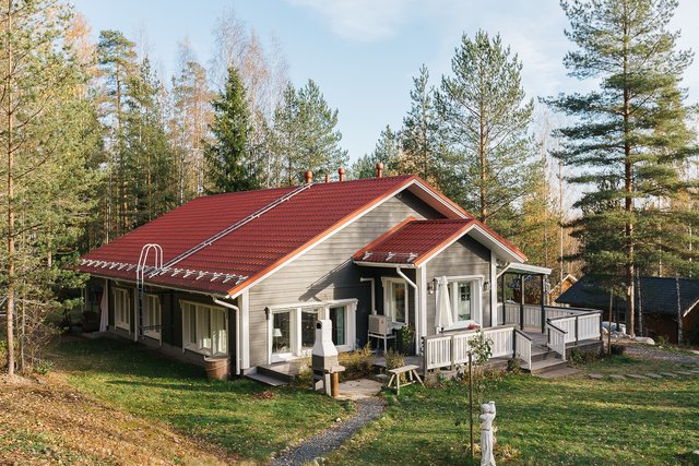 - Ulkoseinärakenne: Verhouspaneeli, eriste+pystyrunko, lamellihirsi. Julkisivupinnoitus: Hirsi Yläpohja: Peltikate, ruodelaudoitus, aluskate, tehdasvalmisteiset kattoristikot. Lisätiedot rakentamisesta: Rakentaminen on aloitettu 2008. Käyttöönottotarkastus 2016. Edellinen omistaja saattanut rakennustyöt loppuun seuraavilla toimilla vuoden 2020 aikana: Keittiön-, apukeittiön-, kph:n ja wc:n kalusteet uusittu. Sisäpinnat siistitty/maalattu. Ulkovaippa maalattu. Ulkoterassit terassiöljykäsittely/maalaus. Kattoturvatuotteet. Yläpohjan lisäeriste n. 200mm.
