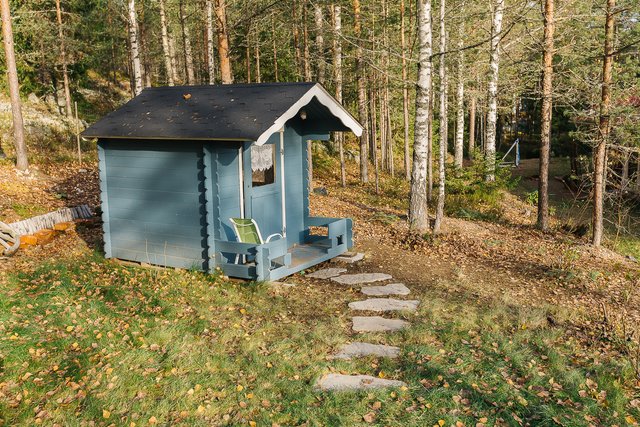 Rakennettu leikkimökki 2021. Ulkovesipiste/ja hana asennettu 2020.