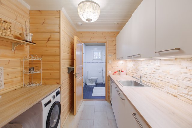 - Tasoja 2kpl, kaapistot (ovet sileää, puolikiiltävää). 2020. Varusteet: Pesukoneliitäntä (pesutorniliitäntä) ja lattialämmitys Seinämateriaalit: Hirsi Lattiamateriaalit: Laatta