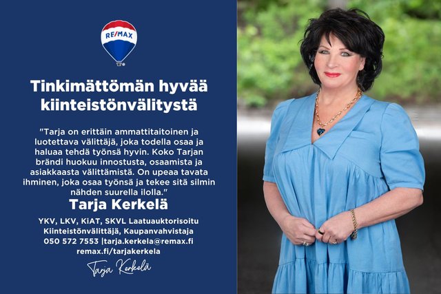 Tätä asuntoa myy Tarja Kerkelä, Kiinteistönvälittäjä LKV, YKV, KiAT, LVV, Kaupanvahvistaja