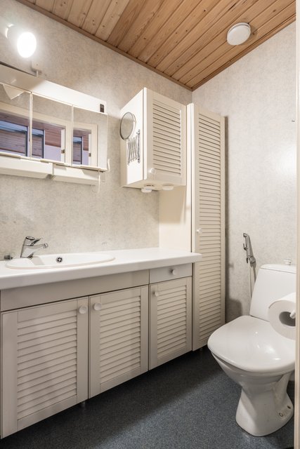 Tilava kylpyhuone, erillinen wc, sekä makuuhuone vaatehuoneella ovat myös tässä asunnossa. Huoneistoon kuuluu myös oma autotallipaikka, sekä varasto.