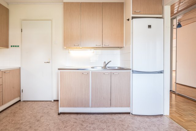 - Jääkaappipakastin, liesi, liesituuletin, ja uuni