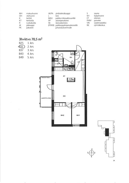 - Kuivaushuone, kaapeli-tv, urheiluvälinevarasto, väestönsuoja, ja lastenvaunuvarasto, huoneistokohtaiset varastot