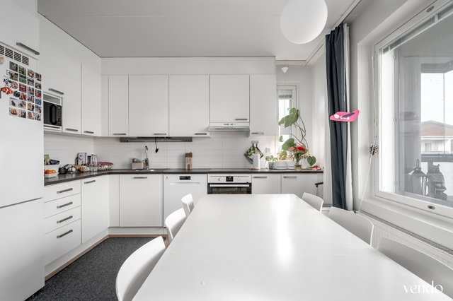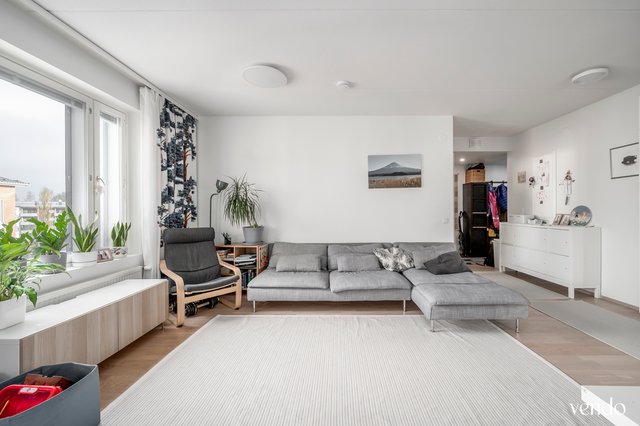 Asunnon keittiössä on modernit kodinkoneet ja tyylikäs laminaattitaso. Kylpyhuoneessa on lattialämmitys, mikä lisää mukavuutta kylminä talviaamuina. Kaksi makuuhuonetta tarjoavat tilaa perheelle tai työtilaksi etätyöskentelyyn.