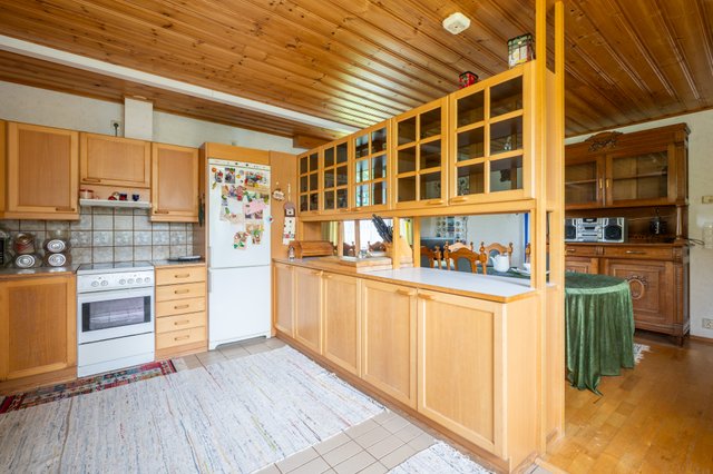 - Isommankin perheen keittiö, jossa varusteena on sähköliesi, uuni, jääkaappi/pakastin yhdistelmä ja astianpesukone. Keittiössä on runsaasti kaappitilaa ja ruokailutilaan mahtuu isompikin ruokailuryhmä. LATTIA: laatta SEINÄT: kaakeli ja tapetti