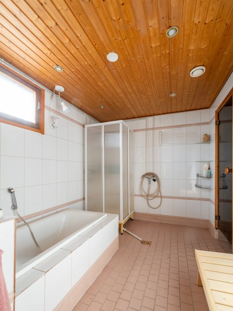 - Varusteena on suihku, suihkukaappi, amme ja wc-istuin. LATTIA: laatta SEINÄT: kaakeli