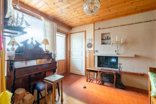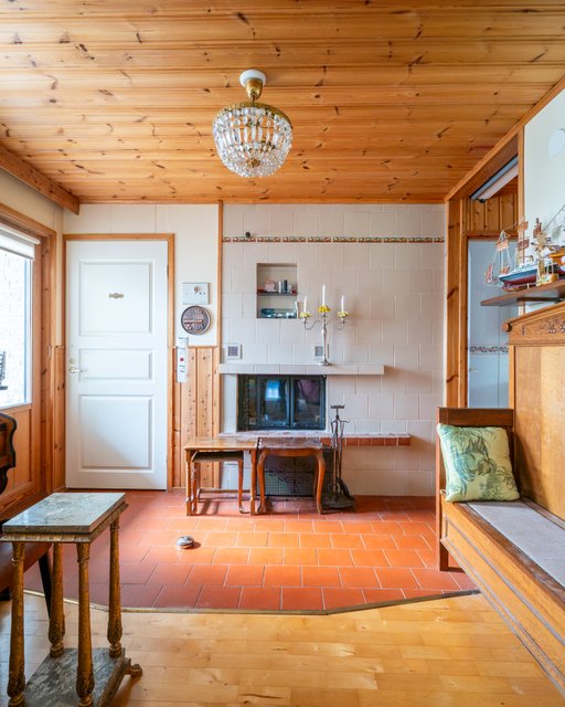 - Takkahuone, tuulikaappi, eteinen ja ruokailutila.