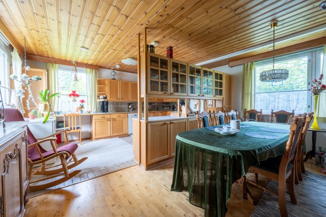 tulvii luonnonvaloa ja piha tarjoaa täydellisen paikan kesäpäivien viettoon. Asunnon säilytystilat on riittävät ja lämmin autotalli tarjoaa runsaasti säilytystilaa.
