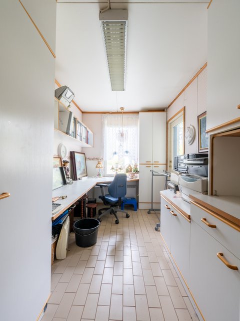 - Reilusti kaappi -ja työskentelytilaa, sekä kulku suoraan ulos. LATTIA: laatta SEINÄT: tapetti