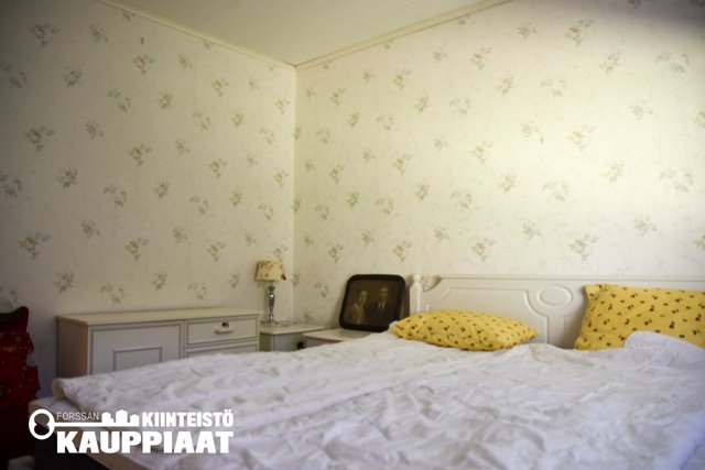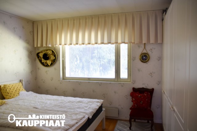 - Makuuhuoneessa parketti ja tapetit. Takkahuonetta on tarvittaessa käytetty toisena makuuhuoneena.