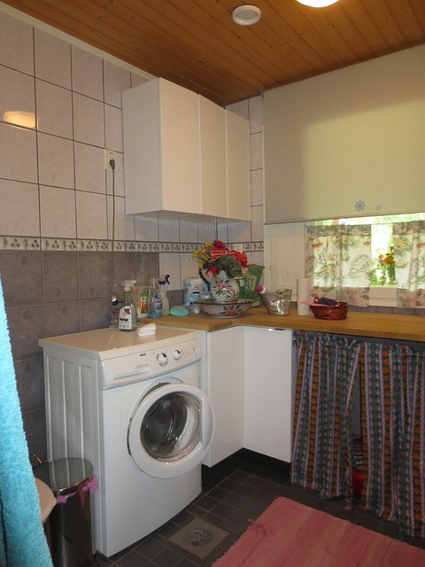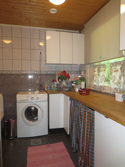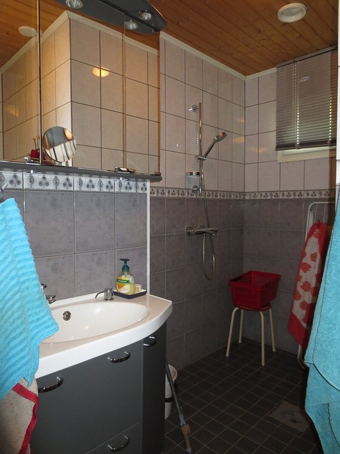 - Pesukoneliitäntä, lattialämmitys, peilikaappi, suihku, ja wc-istuin