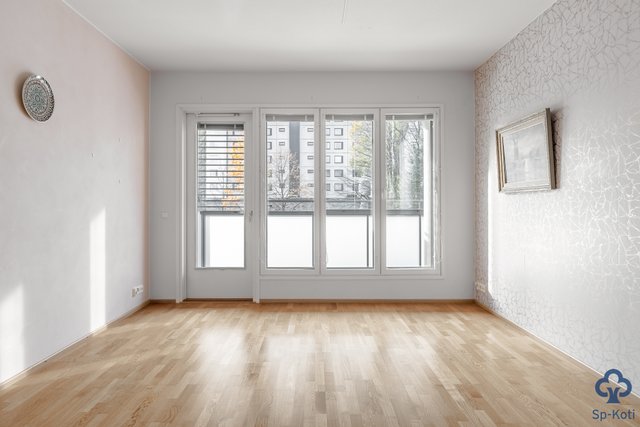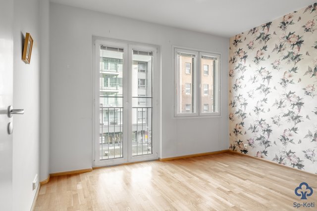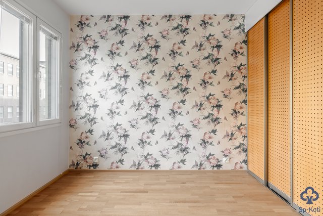 - Parkettialattia, seinät maalattu / tapetoitu. Käynti lasitetulle ja tilavalle parvekkeelle. Parveke on sisäpihan suuntaan (lounas).