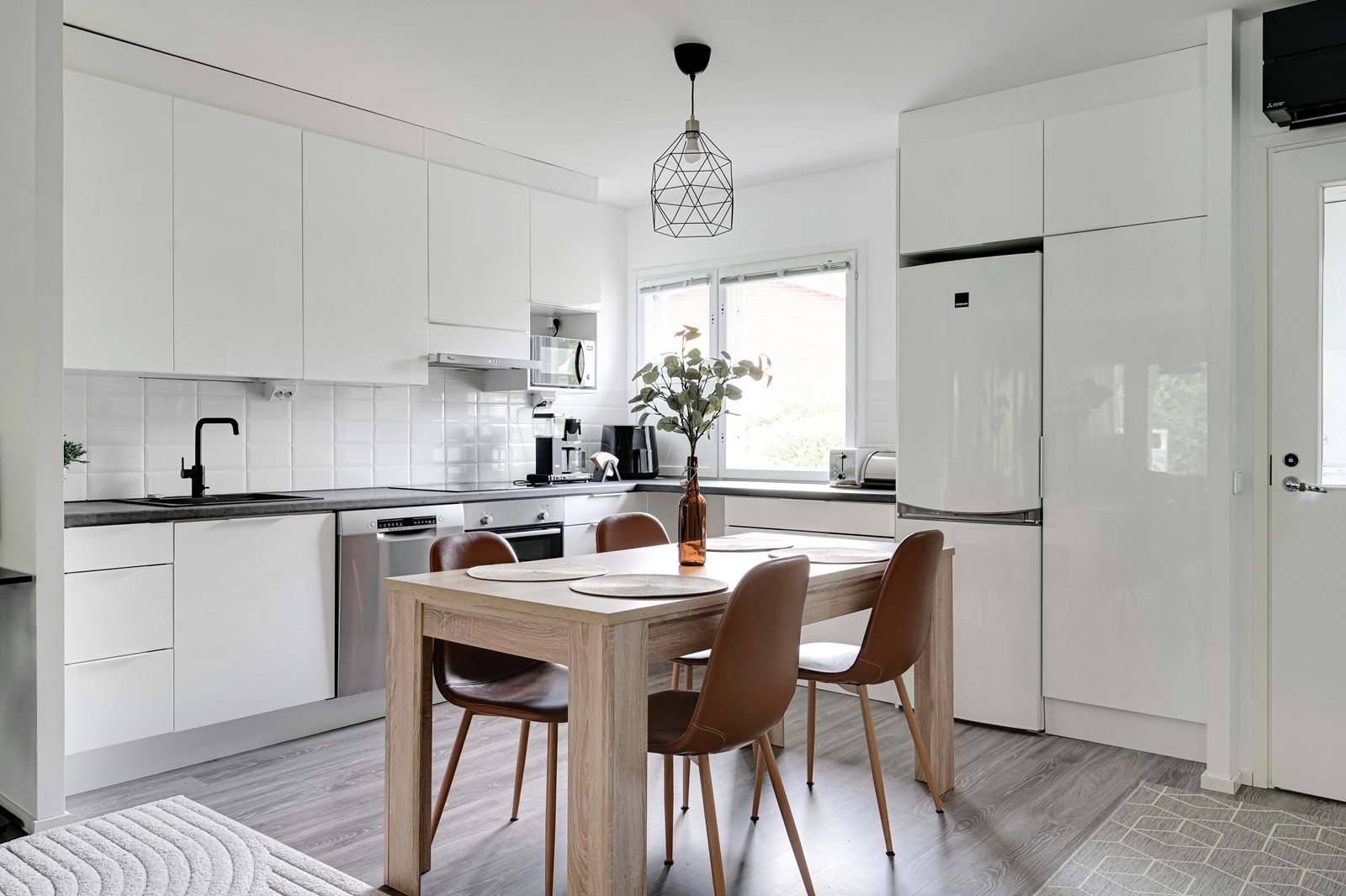 Täysin vuosina 2021/2022 hyvällä maulla remontoitu asunto jolla oma takapiha tilavalla terassilla.