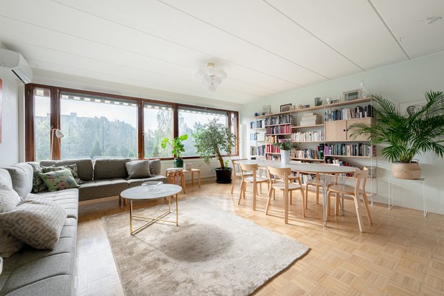 - Avara ja valoisa olohuone, josta viehättävät näkymät pitkälle ympäristöön.