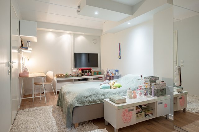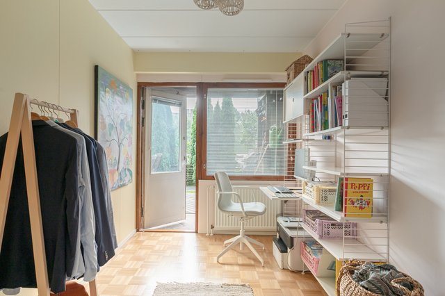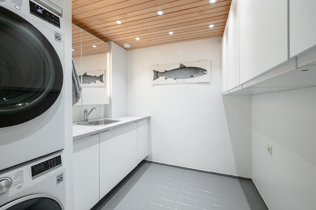 - Kylpyhuoneen yhteydessä mukavan kokoinen kodinhoitohuone, johon on uusittu kiinteäkalustus vuonna 2021. Kaapisto sekä tasotilaa, pesukoneliitäntä.