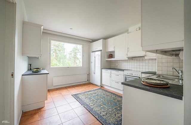- Kaapisto: Valkoinen peilikaappi, laminaattitasot, välitilalaatoitus. Kodinkoneet: Jääkaappi, pakastinkaappi, keraaminen liesi, liesituuletin, astianpesukone. Lattia laattaa, seinät maalattu.
