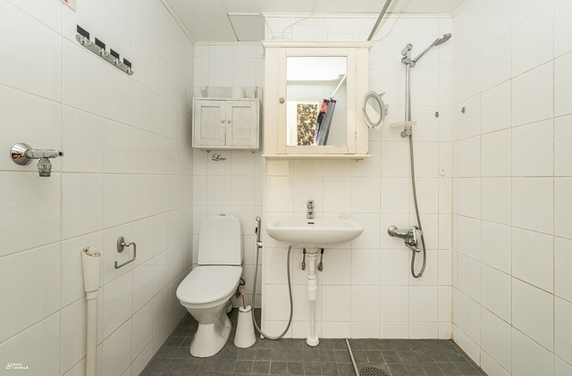 - Suihku, käsienpesuallas, peilikaappi, kaappi, wc-istuin, pesukoneliitäntä. Lattia ja seinät laattaa.
