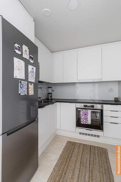 - Liesi, jääkaappipakastin, liesituuletin, astianpesukone, erillisuuni, mikroaaltouuni, ja kiinteät valaisimet