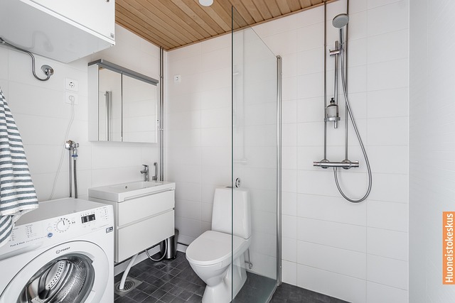 - WC-istuin, lattialämmitys, allaskaappi, peilikaappi, suihkuseinä, pesukoneliitäntä, suihku, ja kiinteät valaisimet
