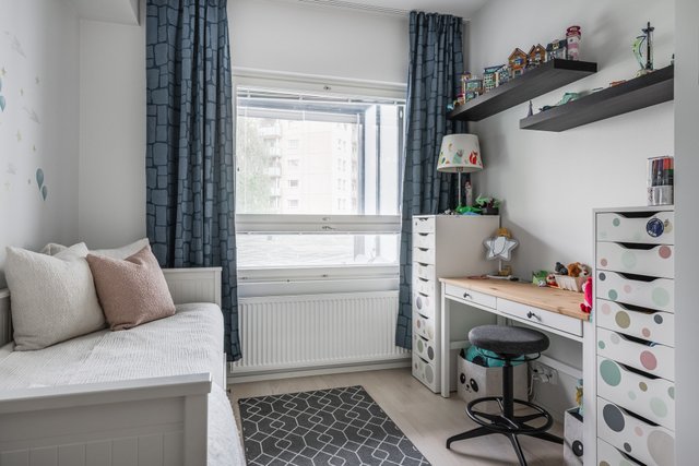 Kolme makuuhuonetta, oma sauna, kylpyhuone sekä erillinen wc tekevät arjesta sujuvaa ja mukavaa. Päämakuuhuoneesta on kulku lasitetulle parvekkeelle, jossa voi viihtyä säältä suojassa ympäri vuoden. Koti sopii erinomaisesti niin lapsiperheelle kuin pariskunnalle tai sinulle, joka tarvitset tilaa myös etätyöhön.