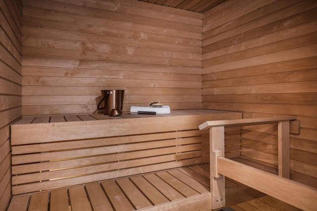 - Laattalattia. Seinät paneloitu. Varustus: Lauteet ja Harvian kiuas.