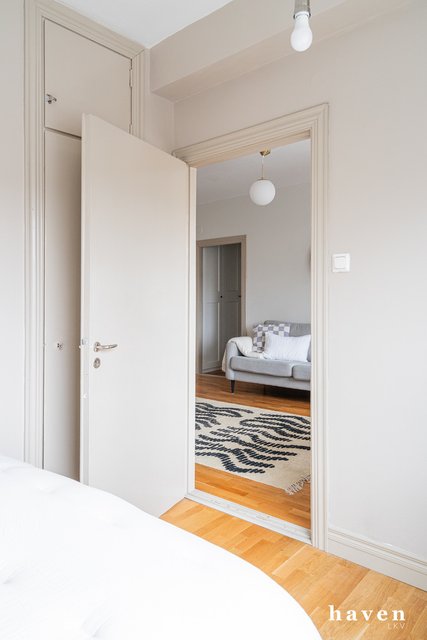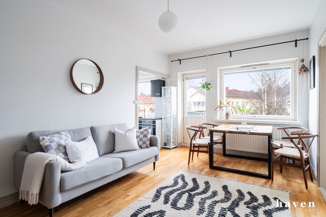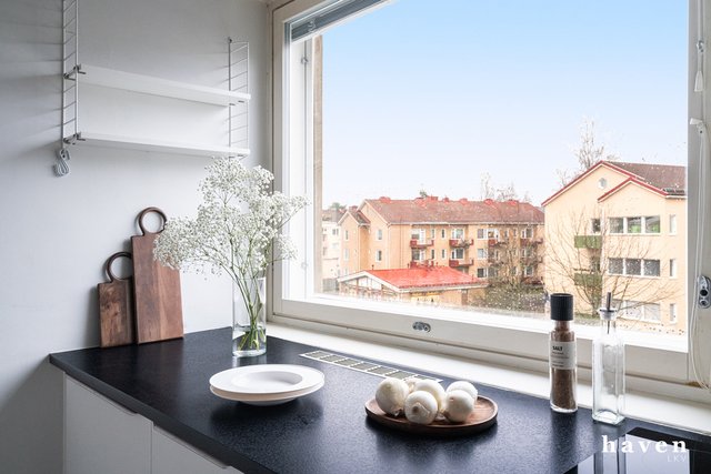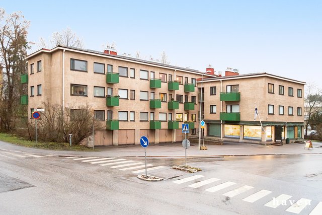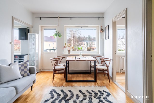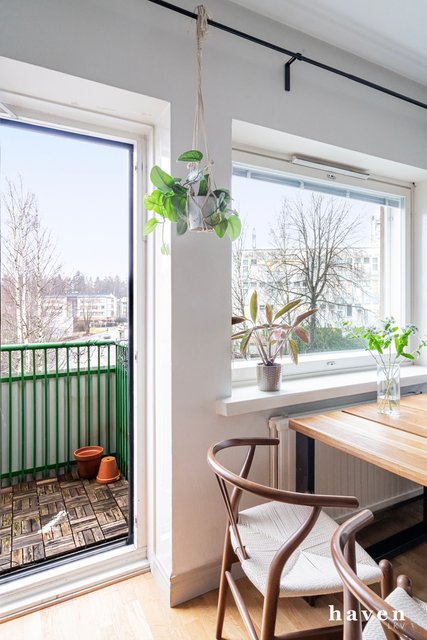 Tässä viehättävässä ja lämminhenkisessä kulmahuoneistossa on erittäin toimiva sekä hyvin suunniteltu pohjaratkaisu. Kodikas keittiötila on avoin ja valoisa, olohuone on avara ja sinne mahtuu hyvin myös isompikin ruokapöytä, joten koti tuntuu aidosti heti neliöitään suuremmalta. Molemmissa makuuhuoneissa ja eteisessä on hyvät säilytystilat. Kylpyhuone on remontoitu perinteisen putkistosaneerauksen yhteydessä vuonna 2008-2009. Ylimmän kerroksen asunto on rauhallinen ja parvekkeelta avautuu avoimet.