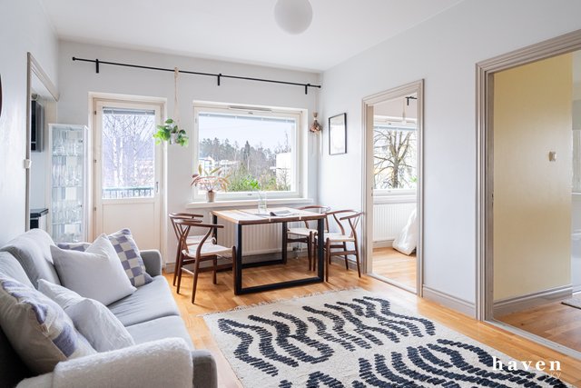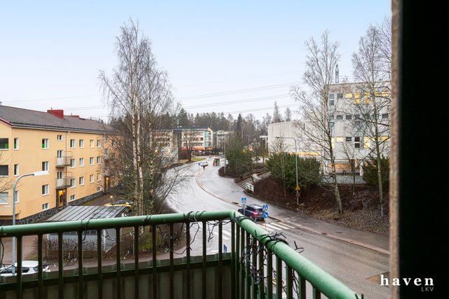 Pohjois-Haaga tarjoaa viihtyisää ja vehreää asumista sekä mutkattomat palvelut jokapäiväiseen arkeen. Talon alakerrassa on erinomainen leipomo, josta saat aamusämpylät tuoreeltaan pöytään ja kävelyetäisyydeltä löytyvät upeat ulkoilualueet, Keskuspuisto ja Haagan monipuoliset puistoalueet. Tämä vehreä ja puistomainen asuinalue sijaitsee erinomaisten kulkuyhteyksien äärellä, liikut sitten kävellen, pyörällä, julkisilla (HSL) tai omalla autolla. Raide-Jokerin pysäkille on alle 500 metriä, lähin bussipysäkki sijaitsee Ilkantien varrella, ja Huopalahden junaseisakkeelle on alle kilometrin matka.