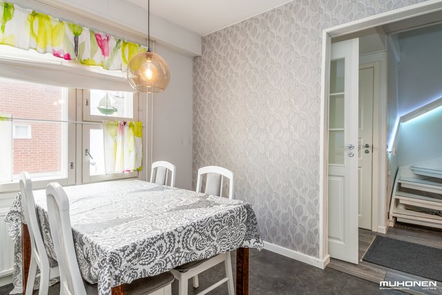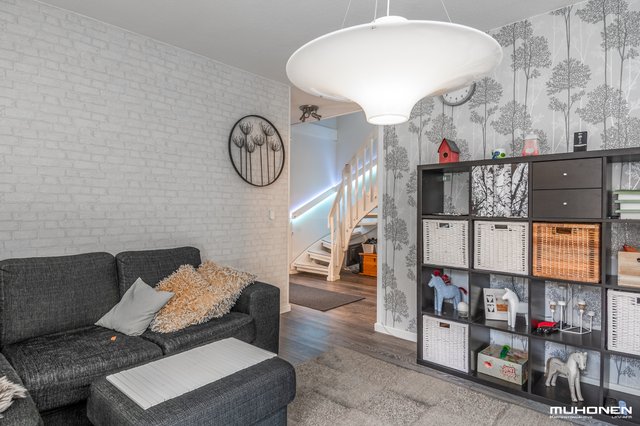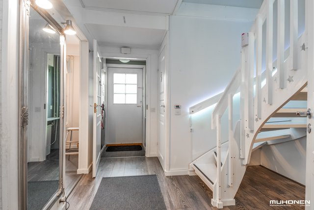 Tämä valoisa ja tilava rivitaloasunto sijaitsee rauhallisella Teeriniemen alueella Vaasassa. Päätyasunnossa on kolme makuuhuonetta, joista yksi on alakerrassa ja kaksi yläkerrassa, mikä tarjoaa joustavuutta perheen tarpeisiin. Keittiö on hyvin varusteltu, ja olohuoneen on erittäin tilava.
