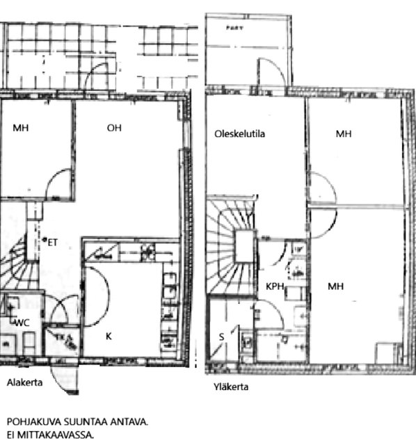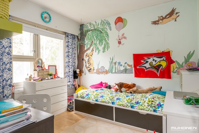 - Yksi makuuhuoneista alakerrassa, kaksi yläkerrassa.