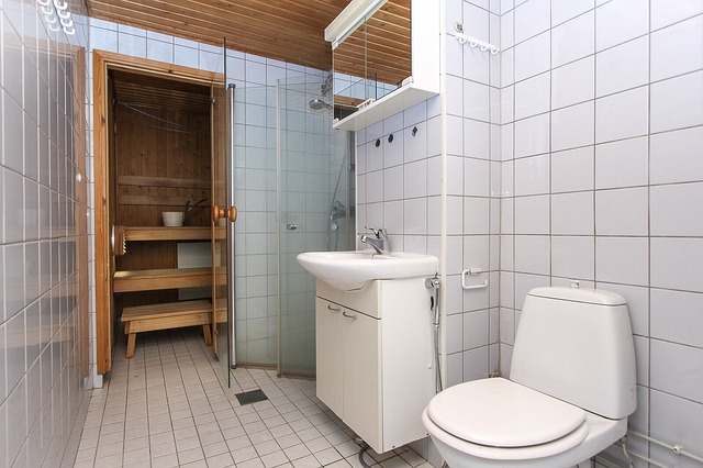 - WC-istuin, pesukoneliitäntä, suihkuseinä, peilikaappi, ja suihku