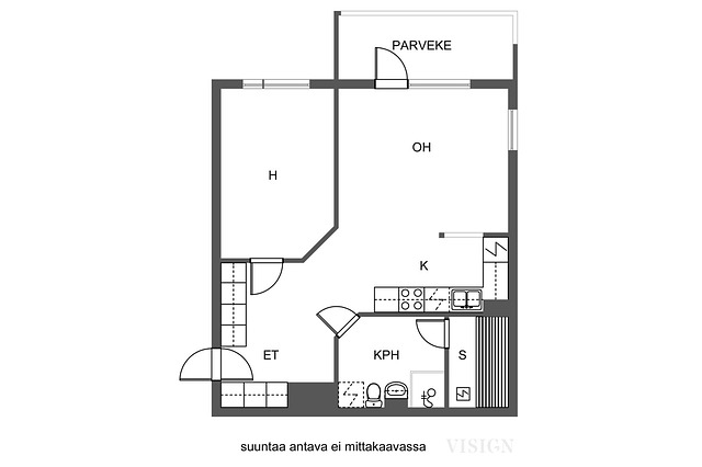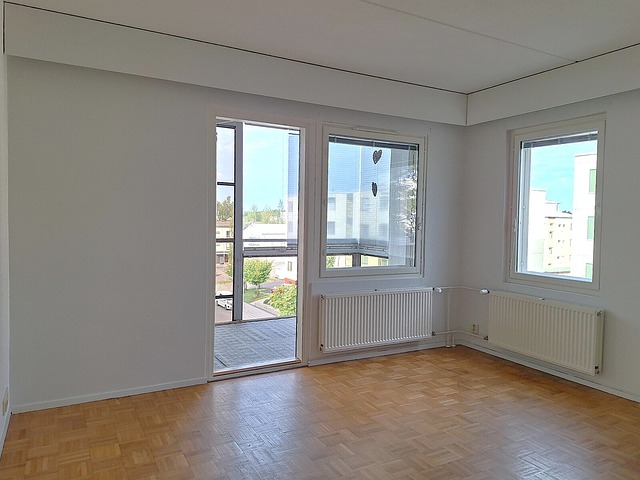 - Reilun kokoinen olohuone, jonka yhteydessä avoin keittiötila pikku seinämällä, sekä lasitettu parveke.