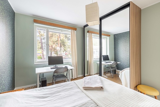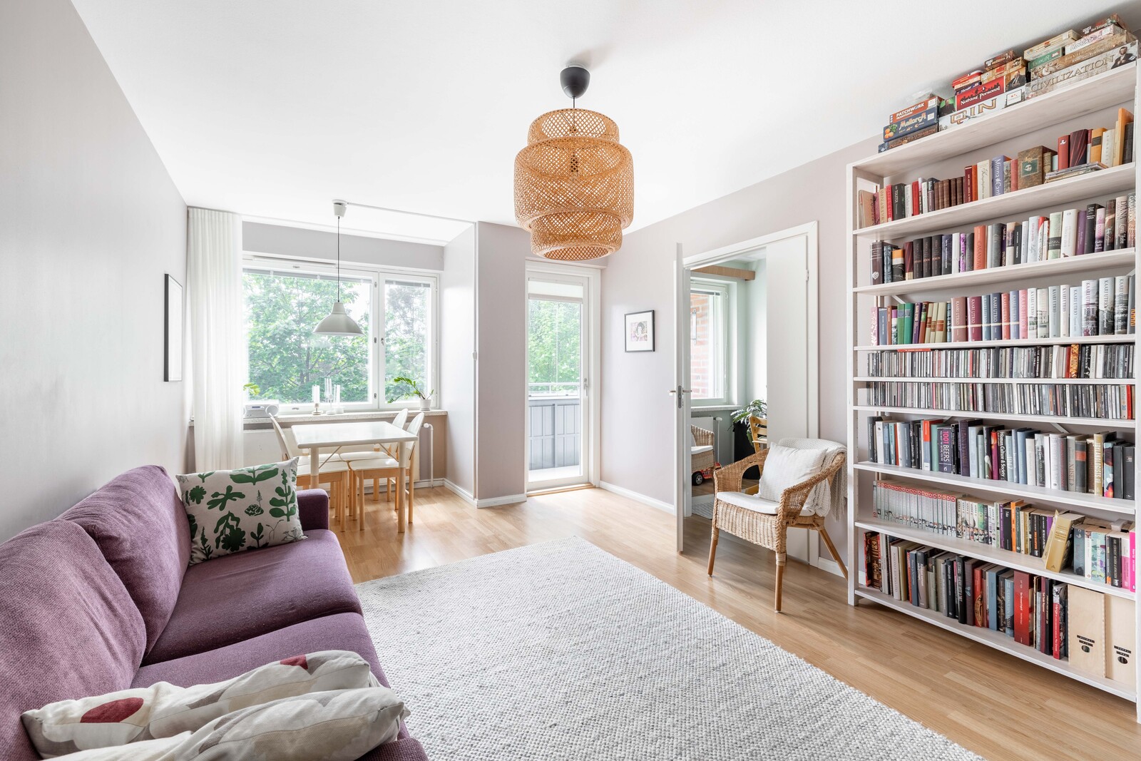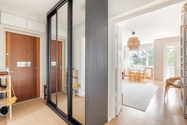 Mainio tilanjako ja kaikki neliöt on tehokkaasti käytetty. Keittiö ja yksi makuuhuoneista ovat pihan puolella. Olohuoneesta on kulku lasitetulle parvekkeelle, josta ilmavat näkymät yli puistoalueiden. Kylpyhuone on uusittu perinteisen putkiremontin yhteydessä ja sinne mahtuu pesukone.