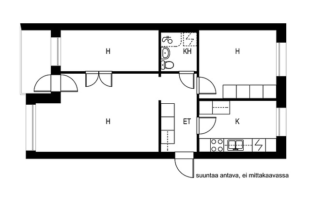 3 h, k, kh/wc, lasitettu parveke ( Yj 3h+k+kh+p)