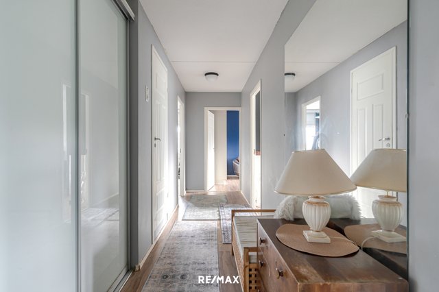 Lasitettu aurinkoinen parveke on yksityinen ja sen näkymässä sielu lepää. Kodista löydät kätevästi kaksi vessaa, joten kaikille perheenjäsenille löytyy tilaa ja yksityisyyttä. Kolme tilavaa makuuhuonetta pitävät jokainen vaatekaapistot sisällään. Eteiseen on teetetty mittojen mukaan liukuovellinen vaatekaapisto.