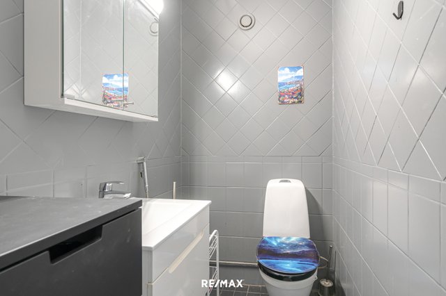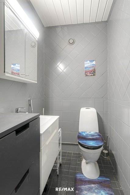 - WC-istuin, suihku, pesukoneliitäntä, lattialämmitys (sähköinen), peilikaappi, pesuallas, allaskaappi, ja bidee-suihku