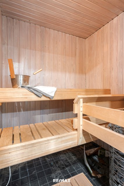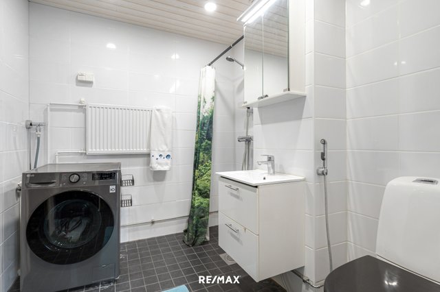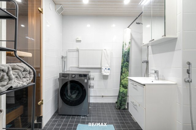 - Tilava pesutila on remontoitu kokonaisuudessaan v. 2019. Katossa on LED-valaistus. Peutiloista kulku oman saunan löylyihin.