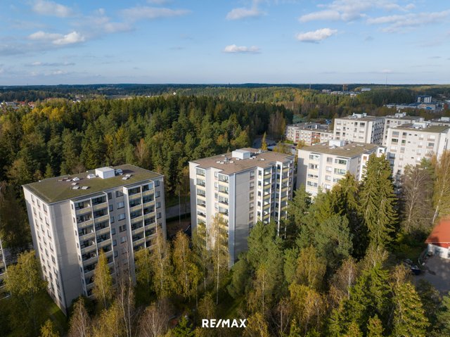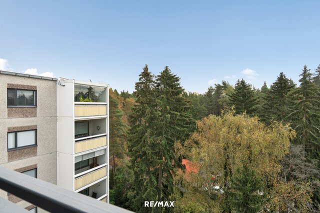 Härkämäen ylimmän kerroksen neliö kauniilla metsänäkymällä kaipailee uusia tuulia!