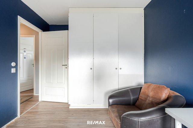 - Käytävän varrella on kolme makuuhuonetta, joissa, kaikissa omat kiinteät vaatekaapistot.