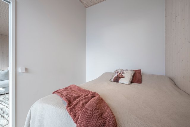 Kaksi makuuhuonetta, joista isommasta on muodostettu lisäksi erillinen tila, joka sopii esimerkiksi työhuonekäyttöön. Asunnon edessä oleva terassi tarjoaa mahdollisuuden nauttia ulkoilmasta omassa rauhassa.