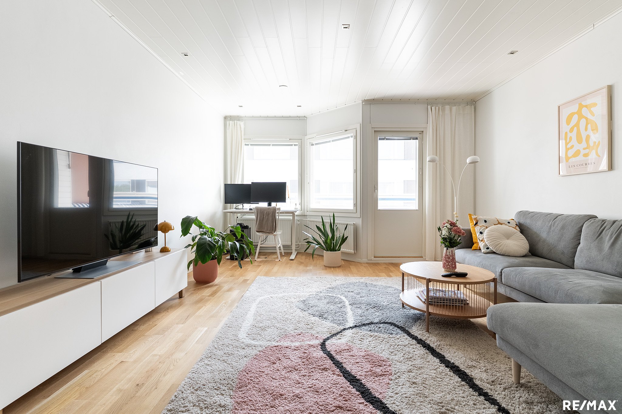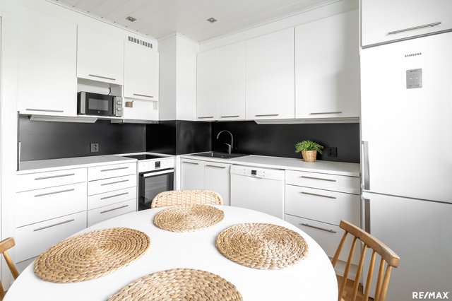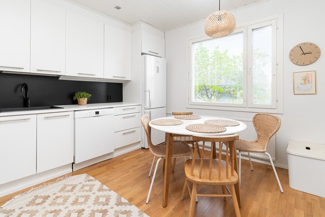 Tässä kodissa lämpiää oma sauna juuri silloin, kun sinä haluat. Käytännöllinen kodinhoitotila ja erillinen wc tuovat arkeen toimivuutta. Lasitettu suojaisa parveke on mukava lisätila keväästä pitkälle syksyyn. Keittiö on varusteltu nykyaikaisesti, tasot, välitilan levyt ja valaistus, allas mukaanlukien hana ja liesi uusittu vuonna 2022. Tämän erittäin hyvässä kunnossa olevan kodin olohuone ja makuuhuone ovat reilun kokoisia, niin kuin asunnot kyseisellä vuosikymmenellä vielä tyypillisesti rakennettiin.