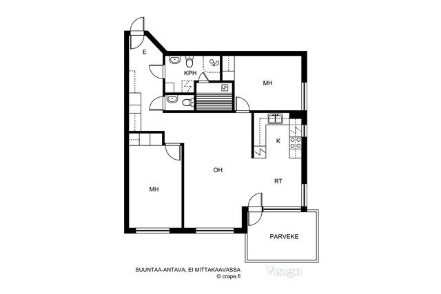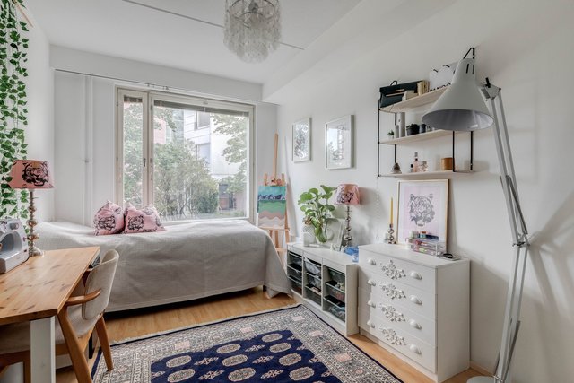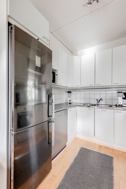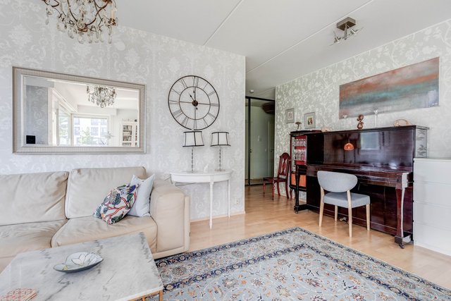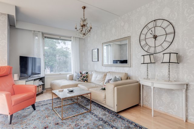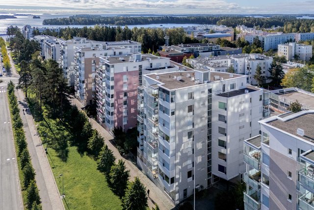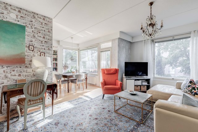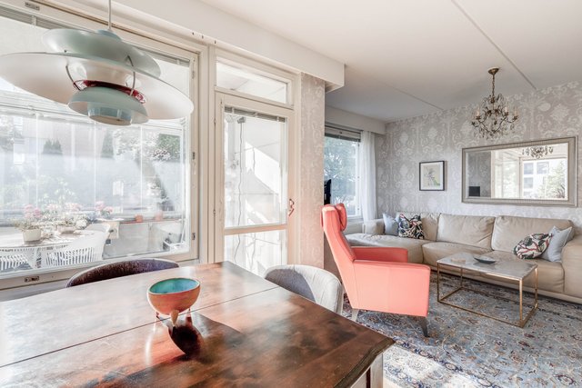 Asunnon olohuone on avara ja valoisa, ja sieltä on käynti etelään ja itään avautuvalle isolle lasitetulle parvekkeelle, joka toimii lisähuoneena keväästä syksyyn. Keittiö on hyvin varusteltu ja siellä on tilaa kokkailla perheen ja ystävien kanssa. Kaksi makuuhuonetta tarjoavat rauhalliset puitteet levolle. Lisäksi asunnossa on tilava ruokailutila.
