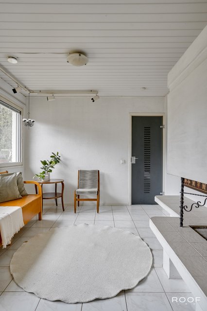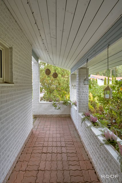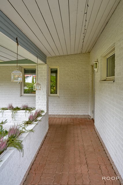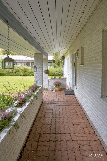 Talvella arkea helpottaa katettu etupihan käytävä, jonka ansiosta lumitöitä on vähän. Erillisellä sisäänkäynnillä varustettu lämmitettävä varastohuone muuntautuu moneen - esimerkiksi harrastetilaksi tai kotikuntosaliksi.