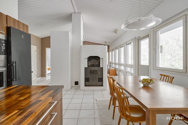 Iso omakotitalo Valkealan kirkonkylässä tarjoaa rauhallista asumista päättyvän kadun päässä, luonnon läheisyydessä. Yksitasoinen pohjaratkaisu tekee arjesta helppoa ja sujuvaa. Kodin sydämenä toimii tunnelmallinen leivinuunitakka, joka tuo lämpöä ja viihtyisyyttä oleskelutiloihin. Leivinuuni avautuu kätevästi keittiön puolelle.