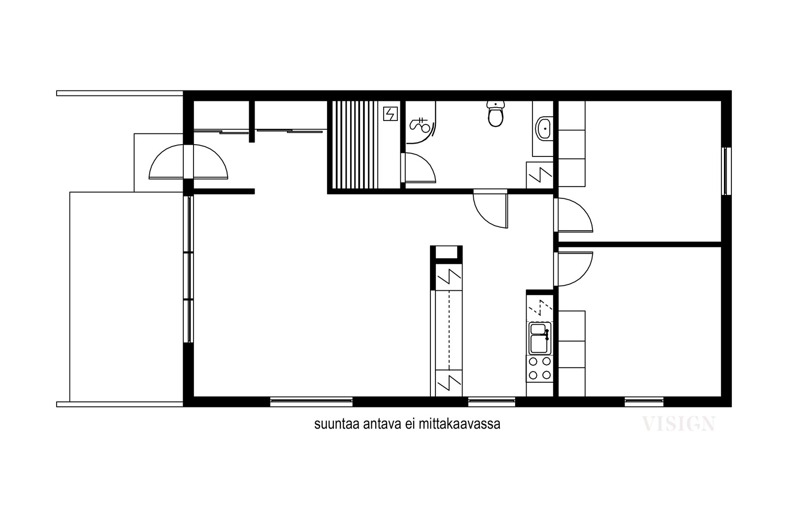- Asuintilat 70 m2, varastotila kellarikerroksessa 13,5 m2