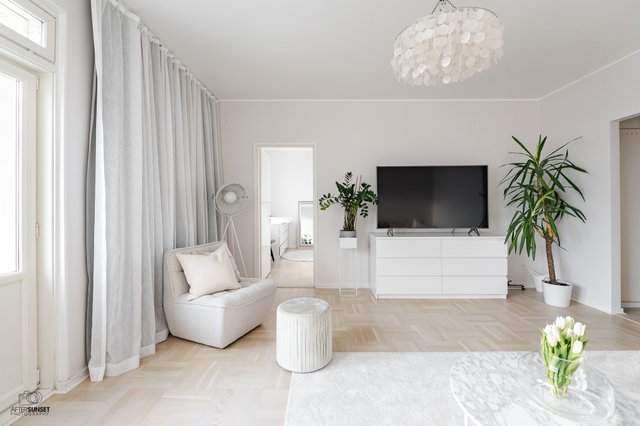 Harvoin tarjolla oleva yläkulman koti on sisustussuunnittelijan avustuksella toteutettu ja ko. huoneiston remontti kunnioittaa talon historiaa ja rakennuksen, sekä kaupunginosan aikakautta.